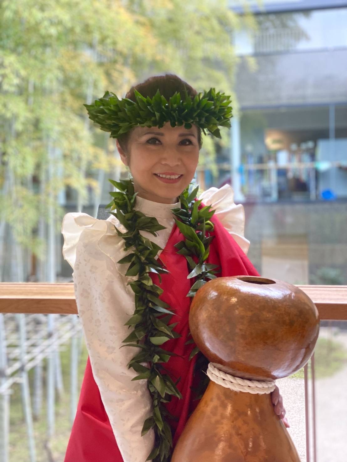 2008年に指導者となり、2015年に藤沢で教室をオープンした後もハワイのクムからの学びは継続中。四半世紀のフラのキャリアとエアライン時代に培われた感性に基づくレッスンは、本物を求める大人の女性から、温かな信頼を得ている。